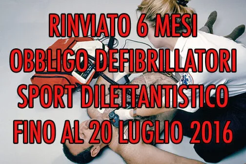 L’obbligo dei defibrillatori è stato spostato di 6 mesi, quindi al 20 luglio 2016.