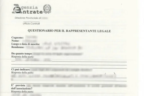 Il Questionario è composto da 4 pagine e da 31 domande (si tratta di uno strumento diverso dall’ormai conosciuto schema ad “interrogatorio” delle 11 domande fatte ai Presidenti delle Associazioni durante le ispezioni fiscali).