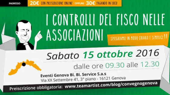 Sabato 15 Ottobre a Genova (GE) convegno sui Controlli del Fisco nelle Associazioni